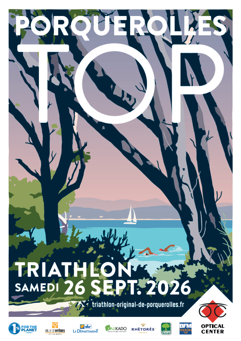 L’affiche du TOP Optical Center Porquerolles Triathlon 2026 est disponible en prévente à 10€ en option de votre inscription.